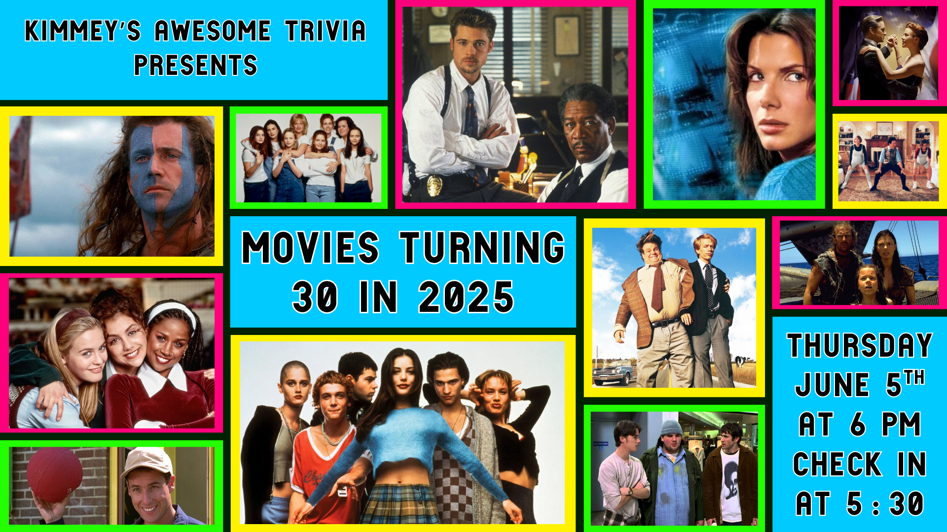 Whether you’re a film buff or just love 90s pop culture, this is your chance to relive the movie magic of '95. Spots fill up fast, so grab your crew and get ready for lights, camera, trivia!