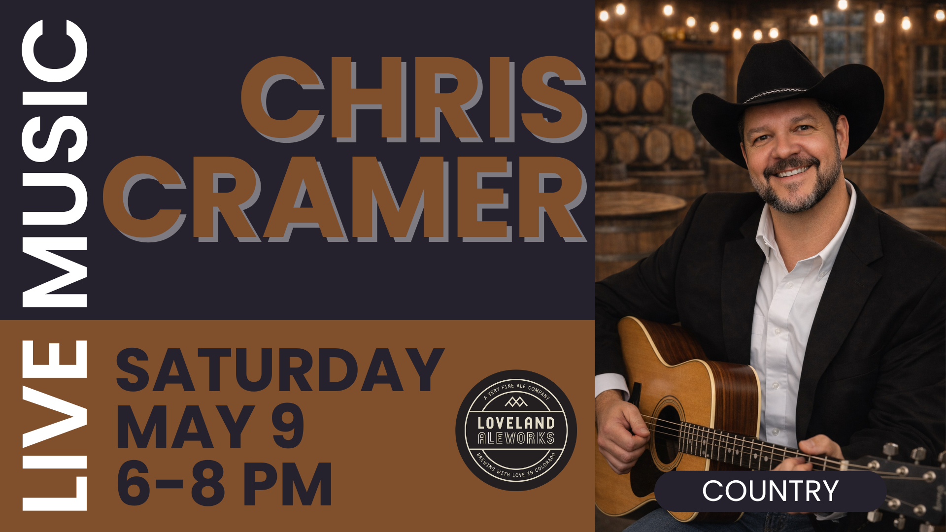 Join us for live music with Chris Cramer on Saturday, May 9 from 6–8 PM at Loveland Aleworks.